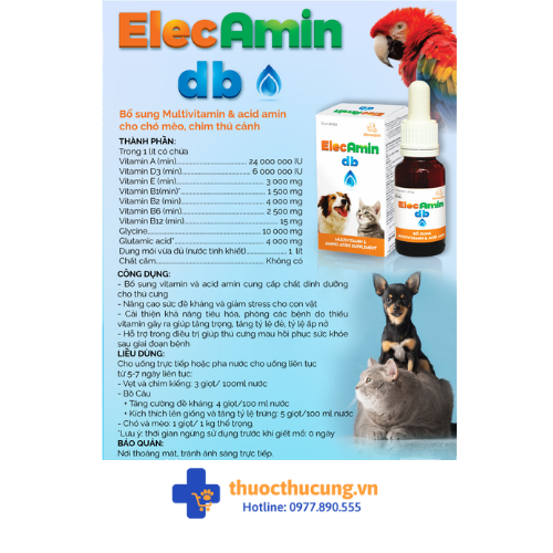 ElecAmin db – Bổ sung Multivitamin & acid amin cho thú cưng: chó mèo, chim cảnh, thú cảnh
